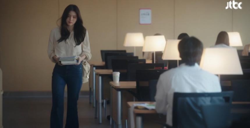 여다경은 도서관에서 공부를 하는 모습입니다. 여다경이 어렸을 적 그림과 디자인에 관심이 많았었다고 한 여회장의 말처럼 디자인 쪽 공부를 하는 모습을 보입니다. 돈이 많으니 육아 신경 쓸 필요가 없나봅니다. 아마 아버지가 갤러리 차려주겠지...