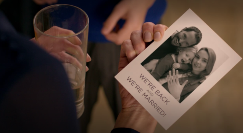 하지만, 이 미친년놈 사이먼과 케이트는 불륜 기간 동안 임신했던 아이와 함께 마을로 다시 이사 오게 됩니다. 그것도 저런 거창한 초대장과 함께 말입니다. 부부의 세계 6화 마지막 장면에서도 지선우가 아들에게 전해진 초대장을 보는 장면이 있었는데 그걸 보면서 아무리 드라마지만 엄청 어이없어했던 기억이 나네요.